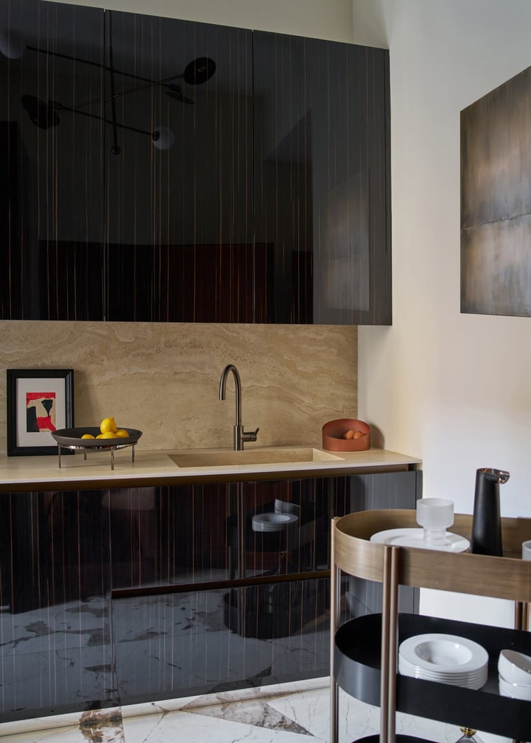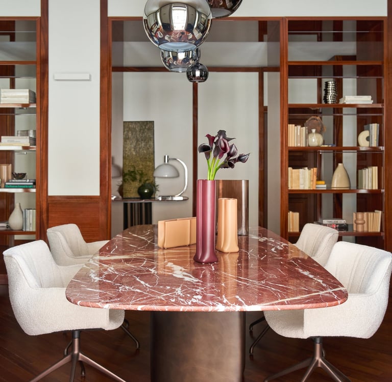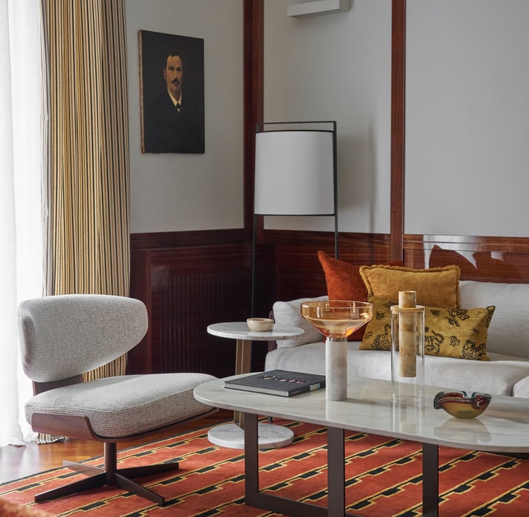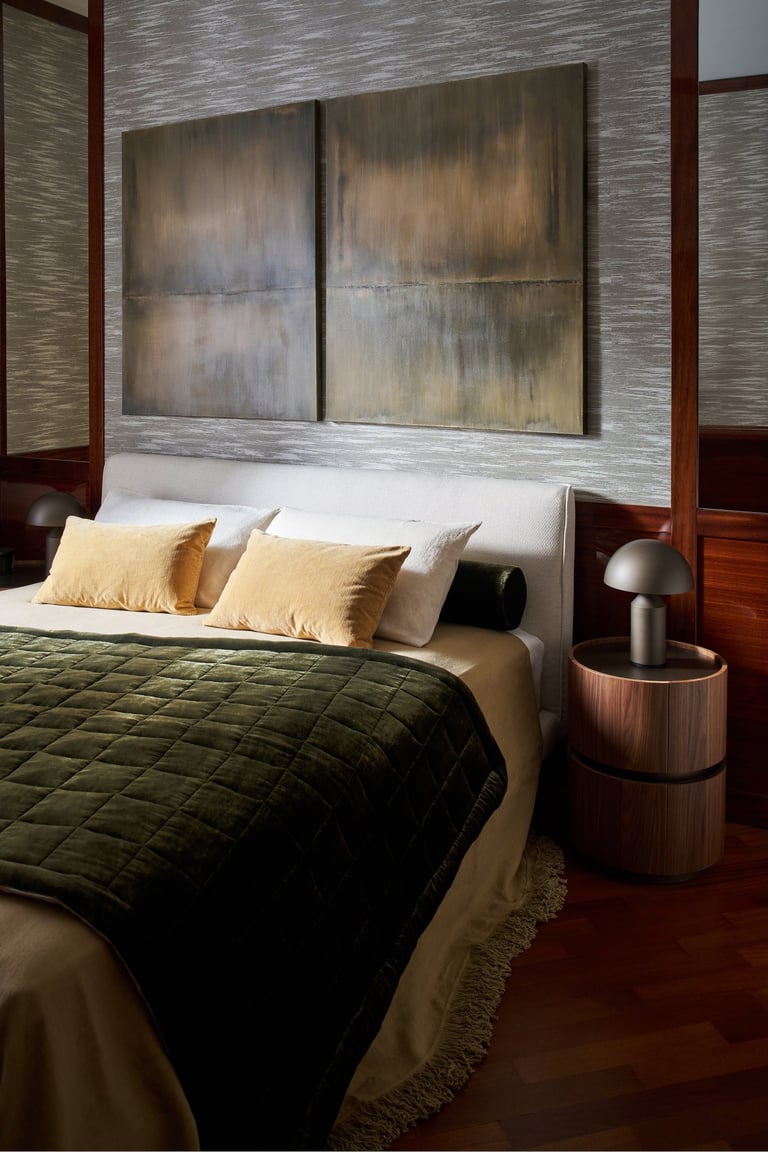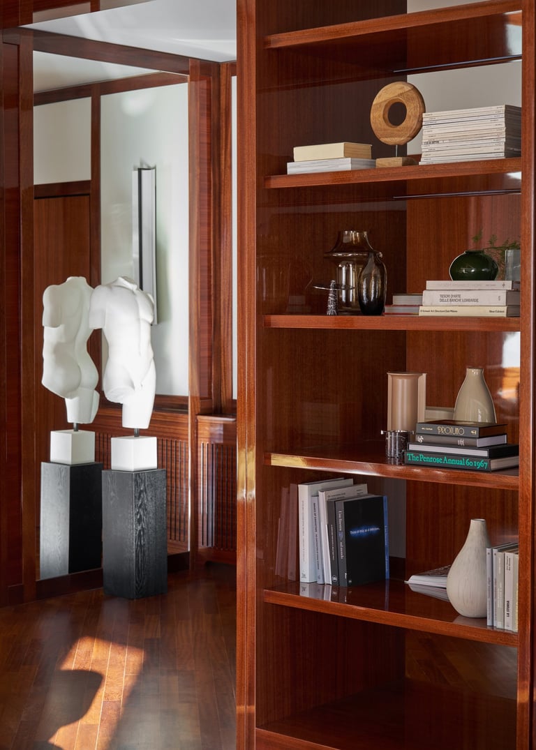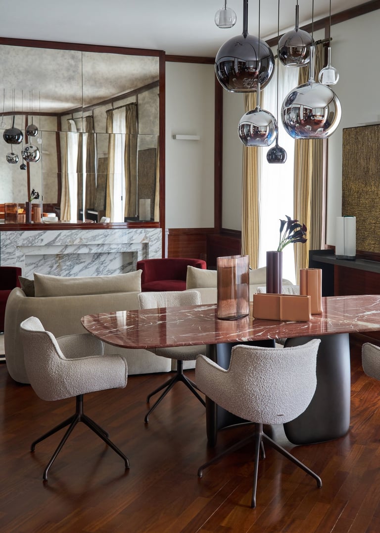An interior design project where architectural rigor meets material richness, achieving a perfect balance between memory and contemporaneity. The spaces are defined by a rigorous architectural language, softened by warm materials and a tailored attention to detail. Wood, the protagonist of the project, shapes partitions, portals, and custom furnishings, creating visual continuity and spatial depth.