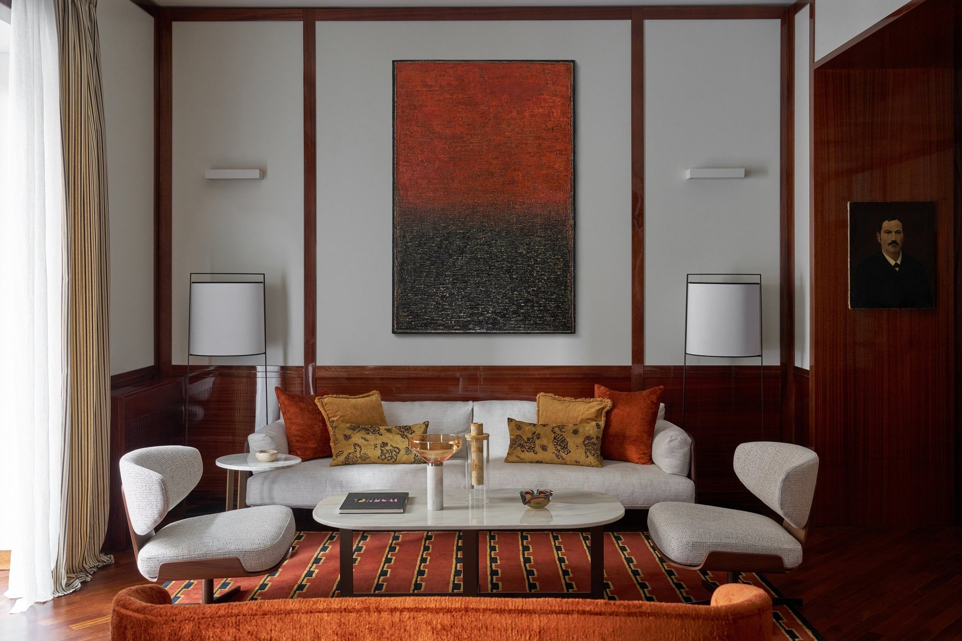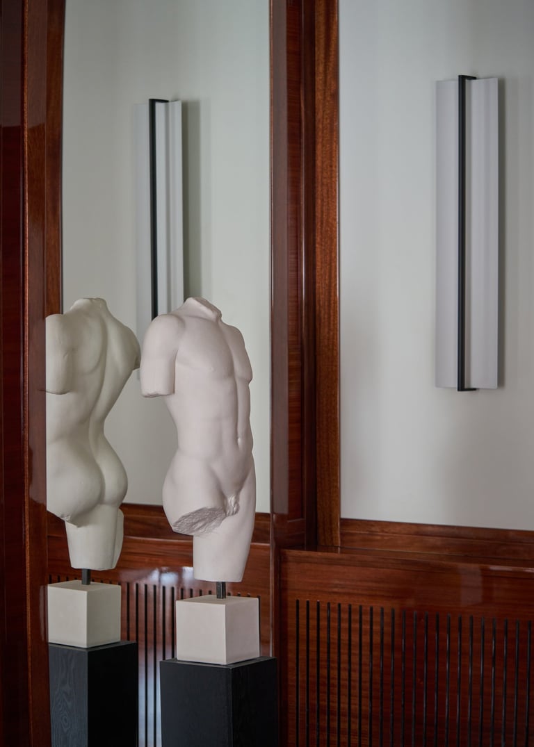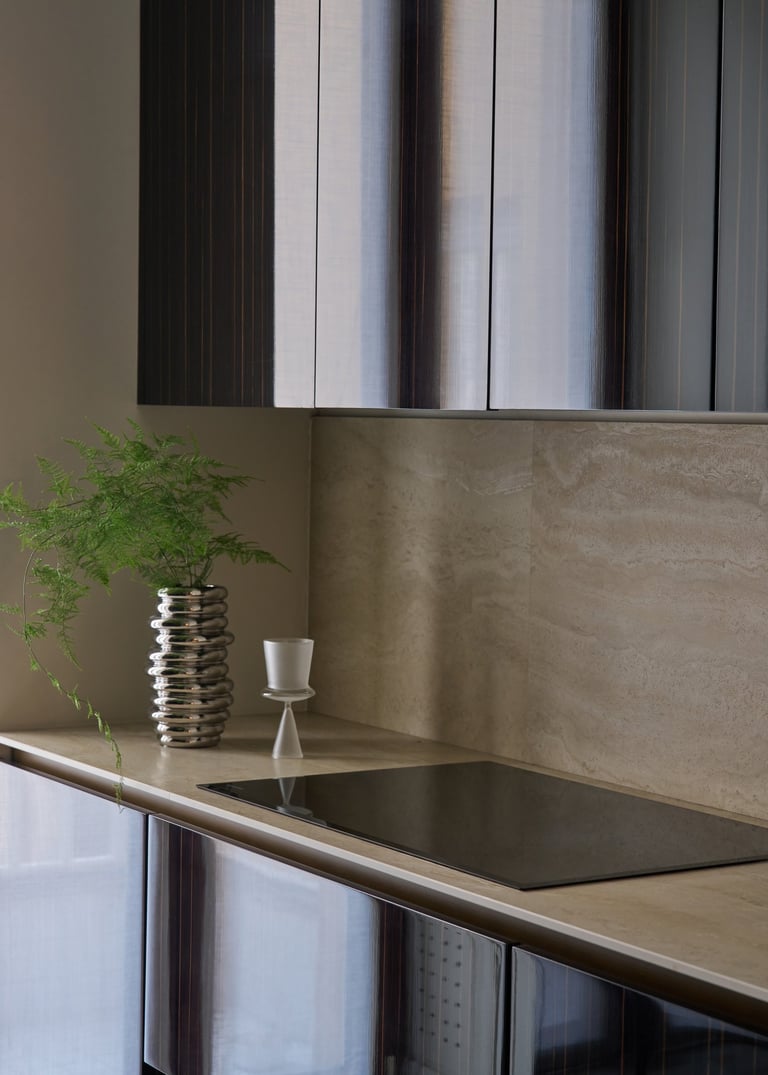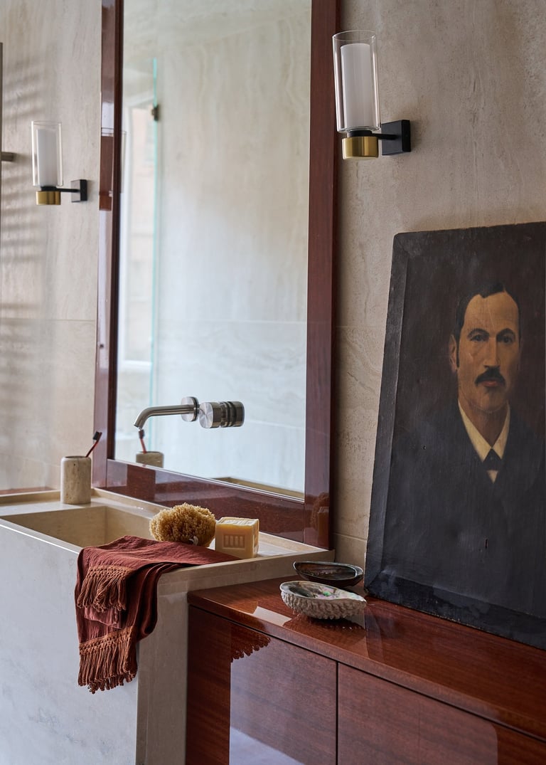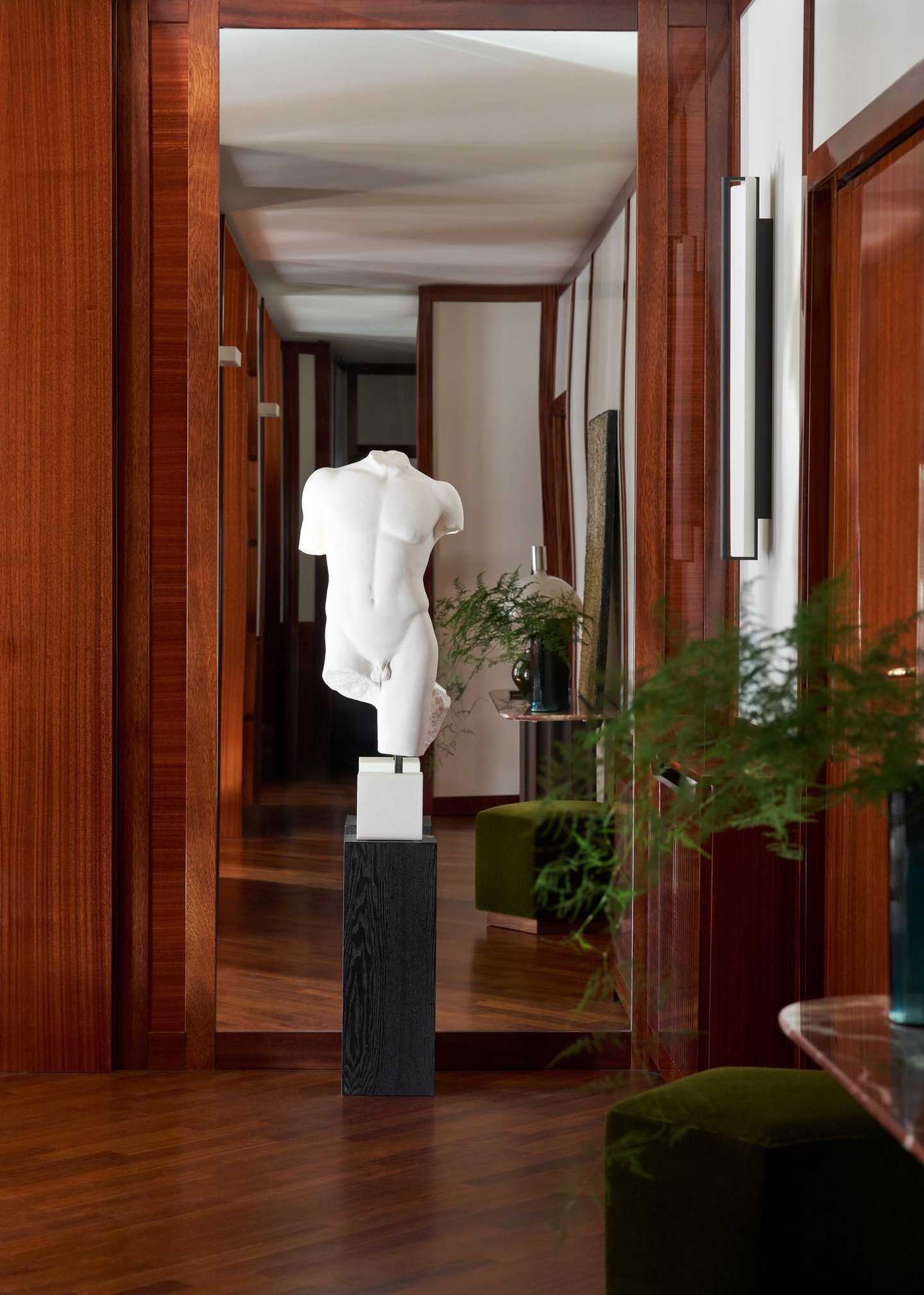 An interior design project where architectural rigor meets material richness, achieving a perfect balance between memory and contemporaneity. The spaces are defined by a rigorous architectural language, softened by warm materials and a tailored attention to detail. Wood, the protagonist of the project, shapes partitions, portals, and custom furnishings, creating visual continuity and spatial depth.