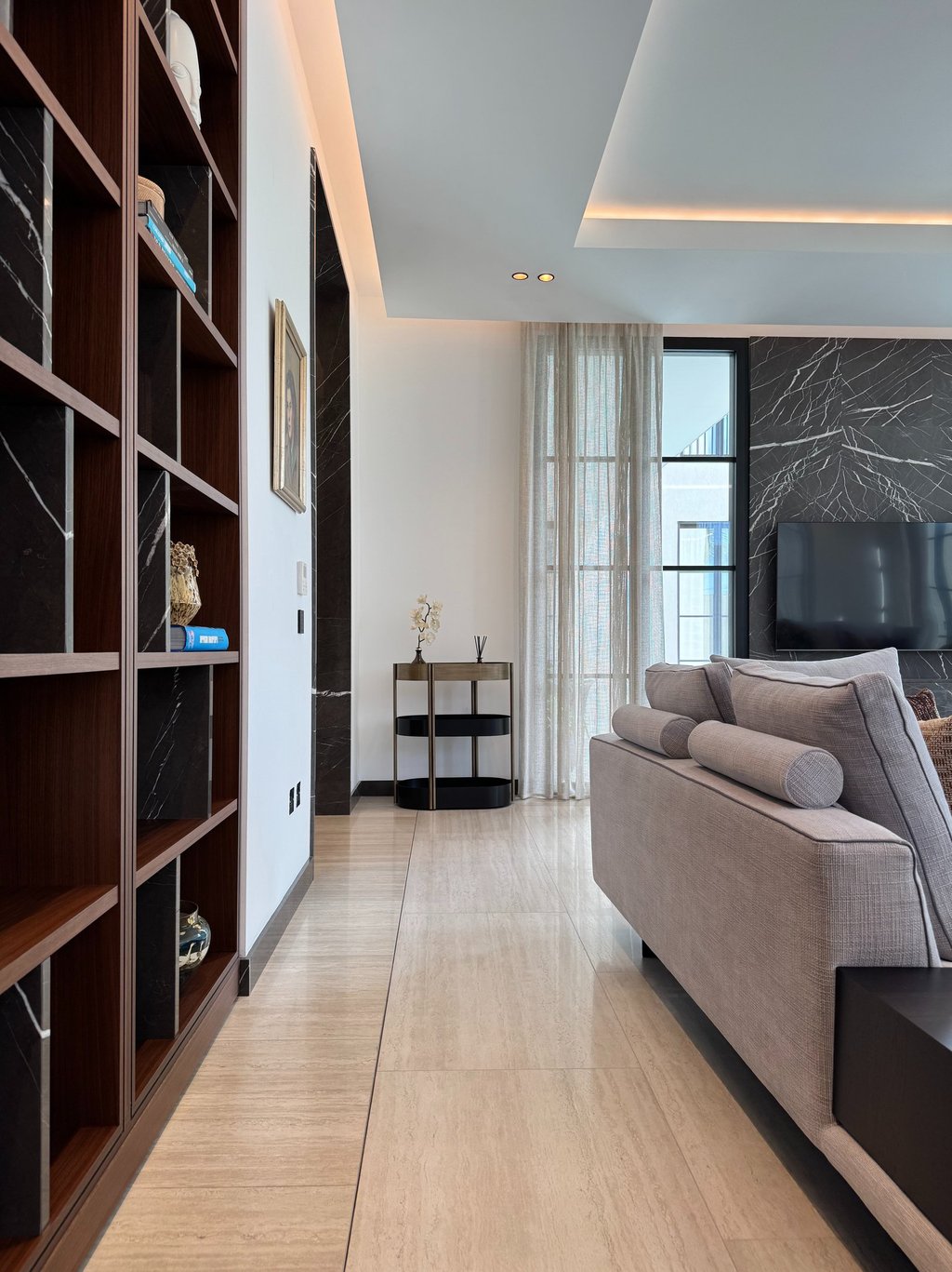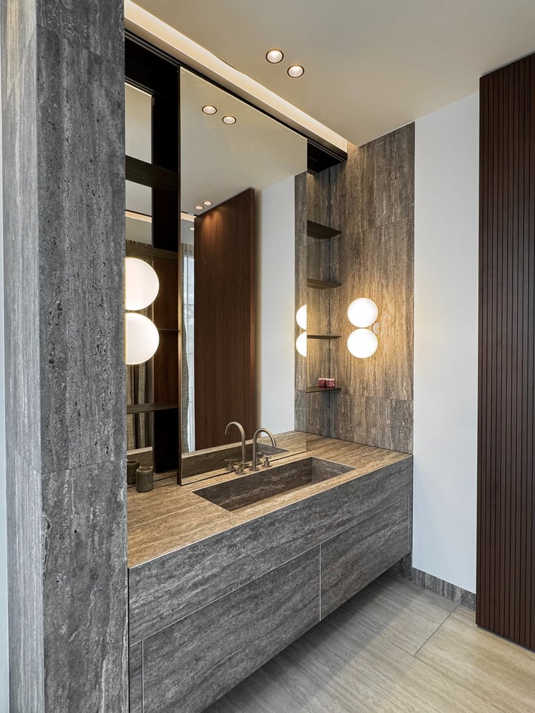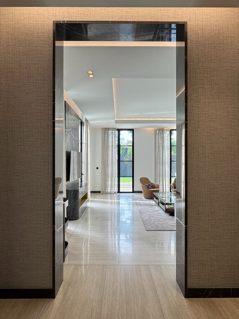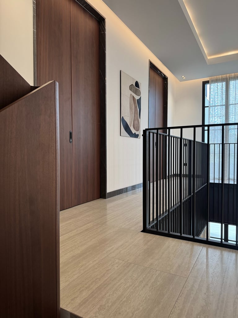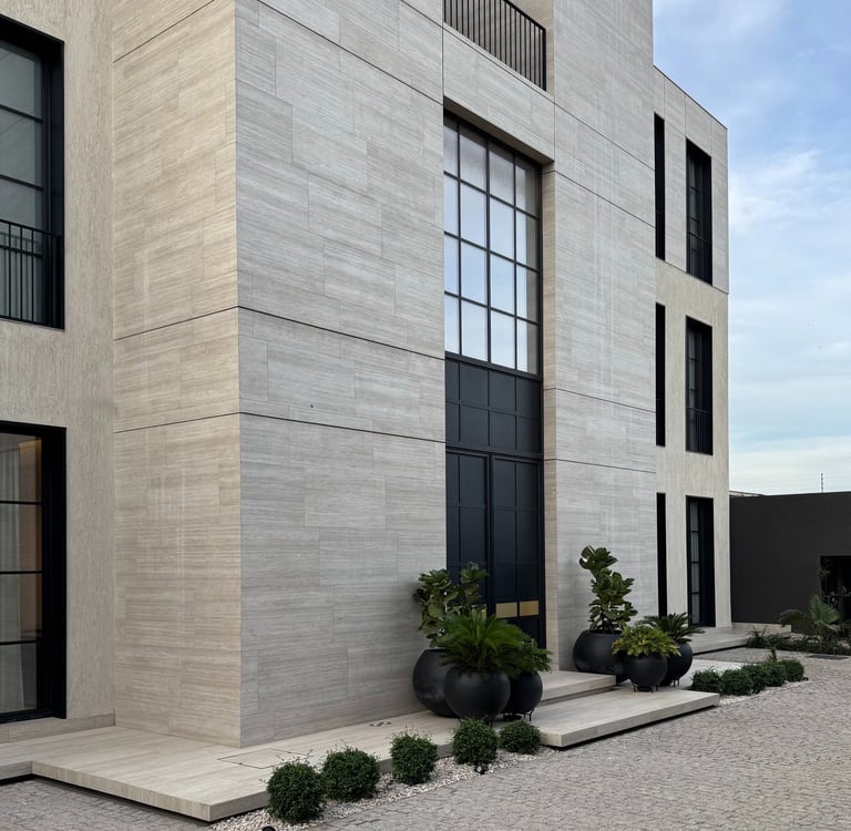 The project was inspired by a specific customer request, a single-family villa with a classic look. Taking up the principles of the Palladian villas of the early 19th century, the project is spread over 4 floors with a system of windows that are all symmetrical and equidistant, transforming the internal courtyard into a continuation of the large swimming pool that visually stands out inside the living room. The underground outdoor areas emphasize the view of the garden from inside the ground floor. The external covering materials are clean and elegant, the dichotomy between the white of the travertine and the black of the aluminum of the linings emphasize the architectural lights of the building. Inside, symmetrical compasses on the central living room lead you through the various rooms.